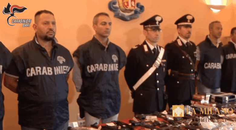 Bari, associazione a delinquere di tipo mafioso armata, detenzione e porto illegale di armi, nonché finalizzata al traffico di sostanze stupefacenti. Sette persone arrestate